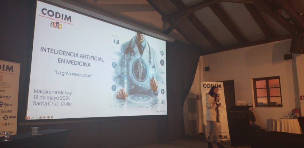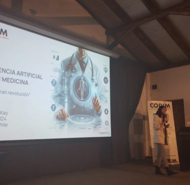 Una exposición destacada y diferente fue la realizada por la ingeniero comercial de la PUC, Sra Macarena Mckay, quien nos ilustró sobre Inteligencia Artificial y sus consecuencias tecnológicas y éticas en la práctica de la medicina.
